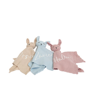 Create a lasting memory with our bunny knit comforter. A beautifully handcrafted treasure to become your little love's best friend. Designed to comfort, soothe and become your baby’s first little friend, this personalised bunny comforter is made for cuddles from day one.