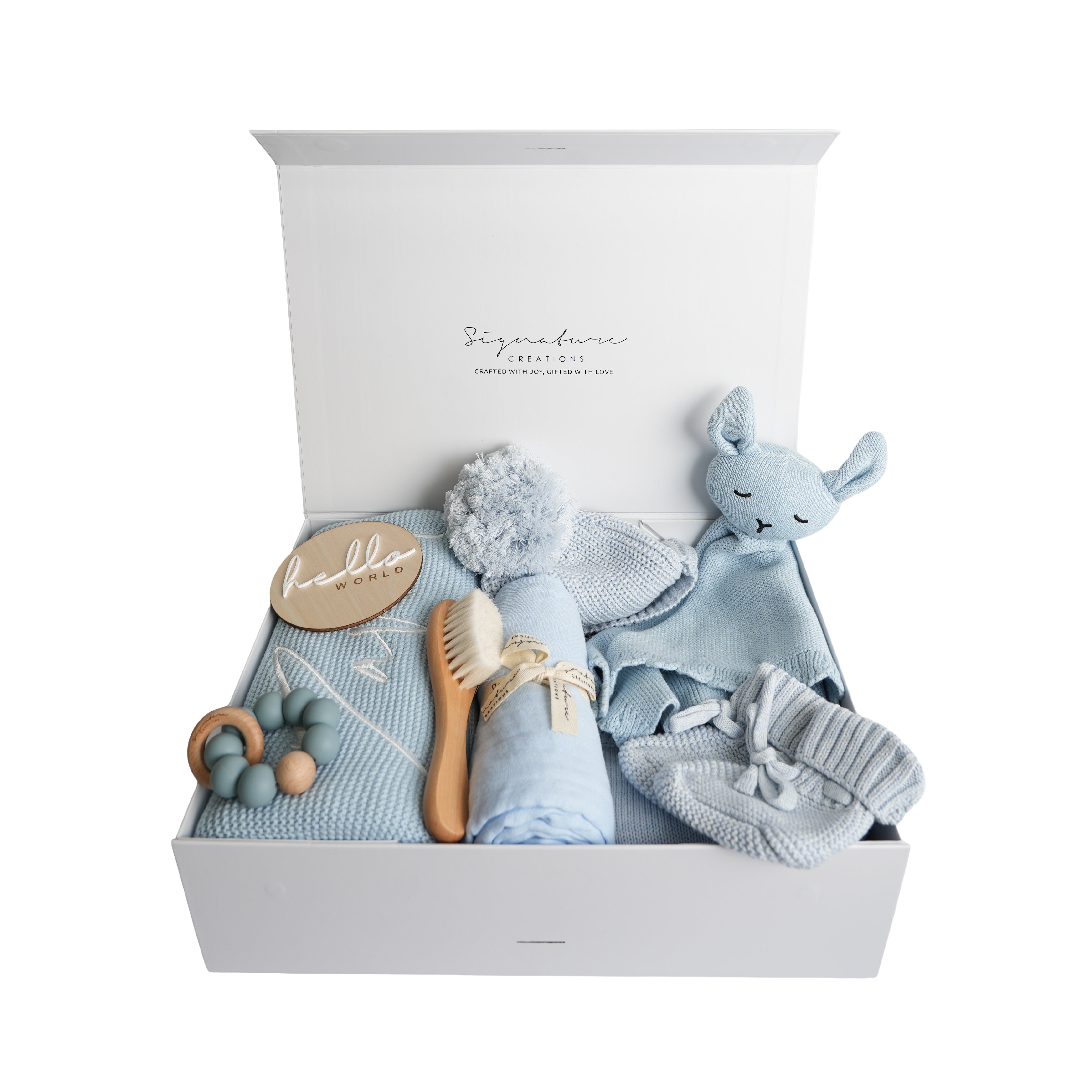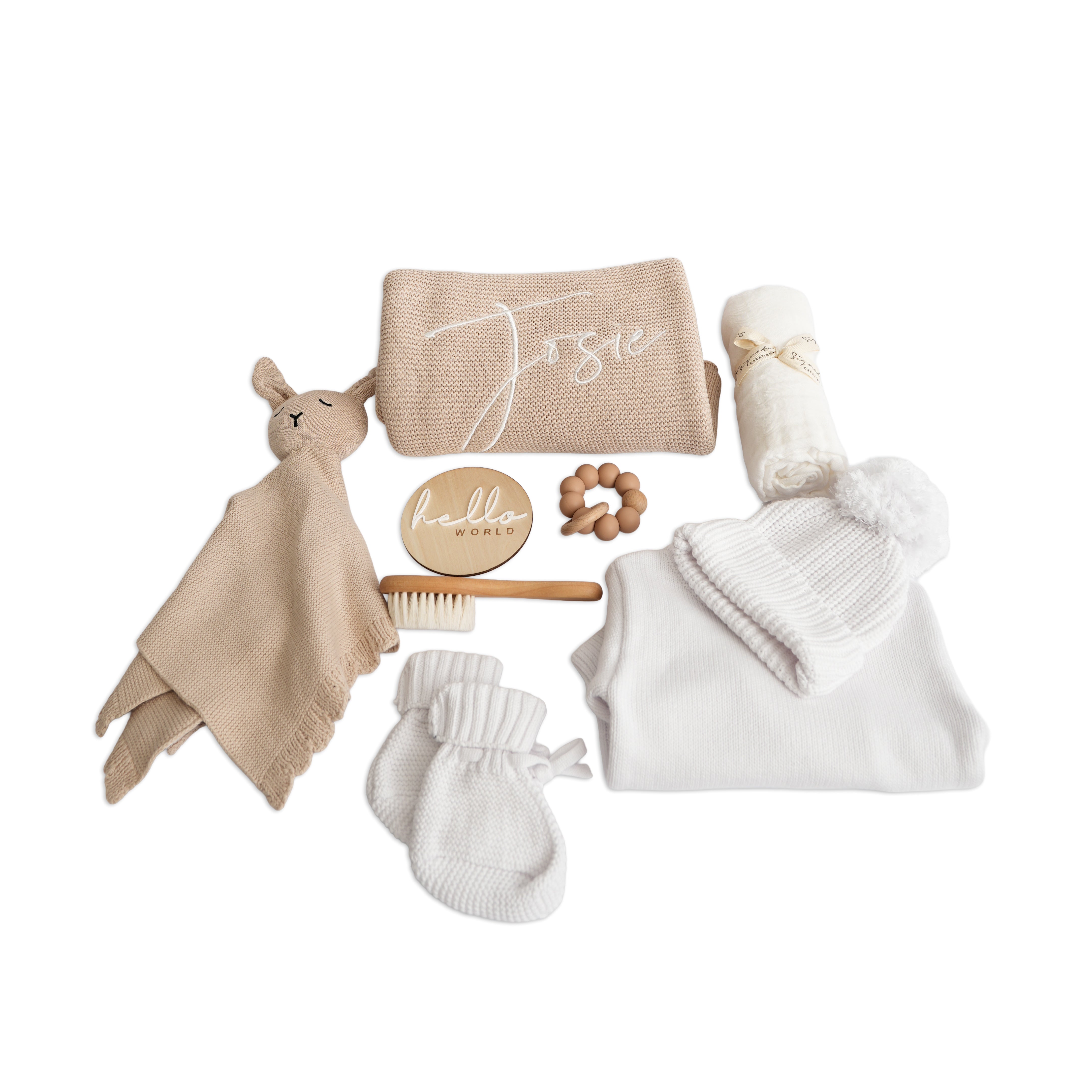 Welcome a precious new arrival with our Ultimate Gift Box thoughtfully curated with beautiful essentials and meaningful keepsakes. This newborn gift is perfect for celebrating life’s sweetest moments.