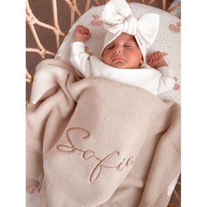 Our much-loved embroidered knitted blankets are a beautiful accessory and timeless keepsake for your little one.