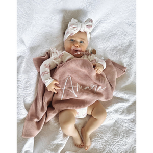 Our much-loved embroidered knitted blankets are a beautiful accessory and timeless keepsake for your little one.