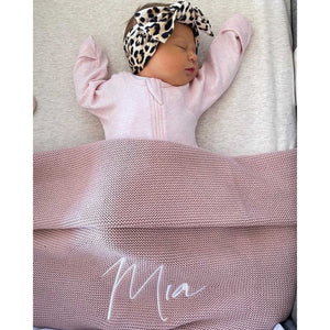 Dusty Pink Knitted Personalised Baby Blanket